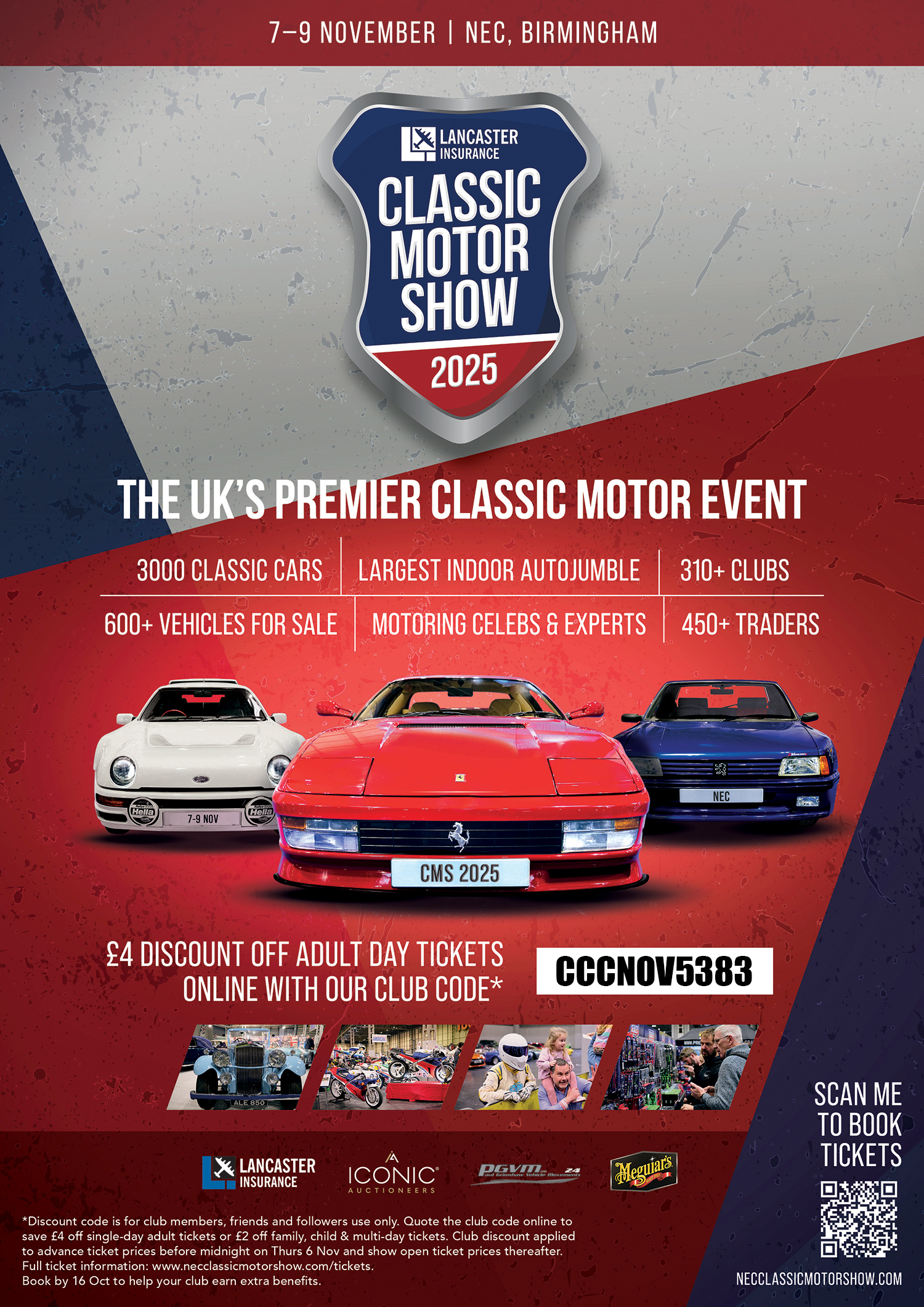 Full ticket information at: www.necclassicmotorshow.com/ticket-information